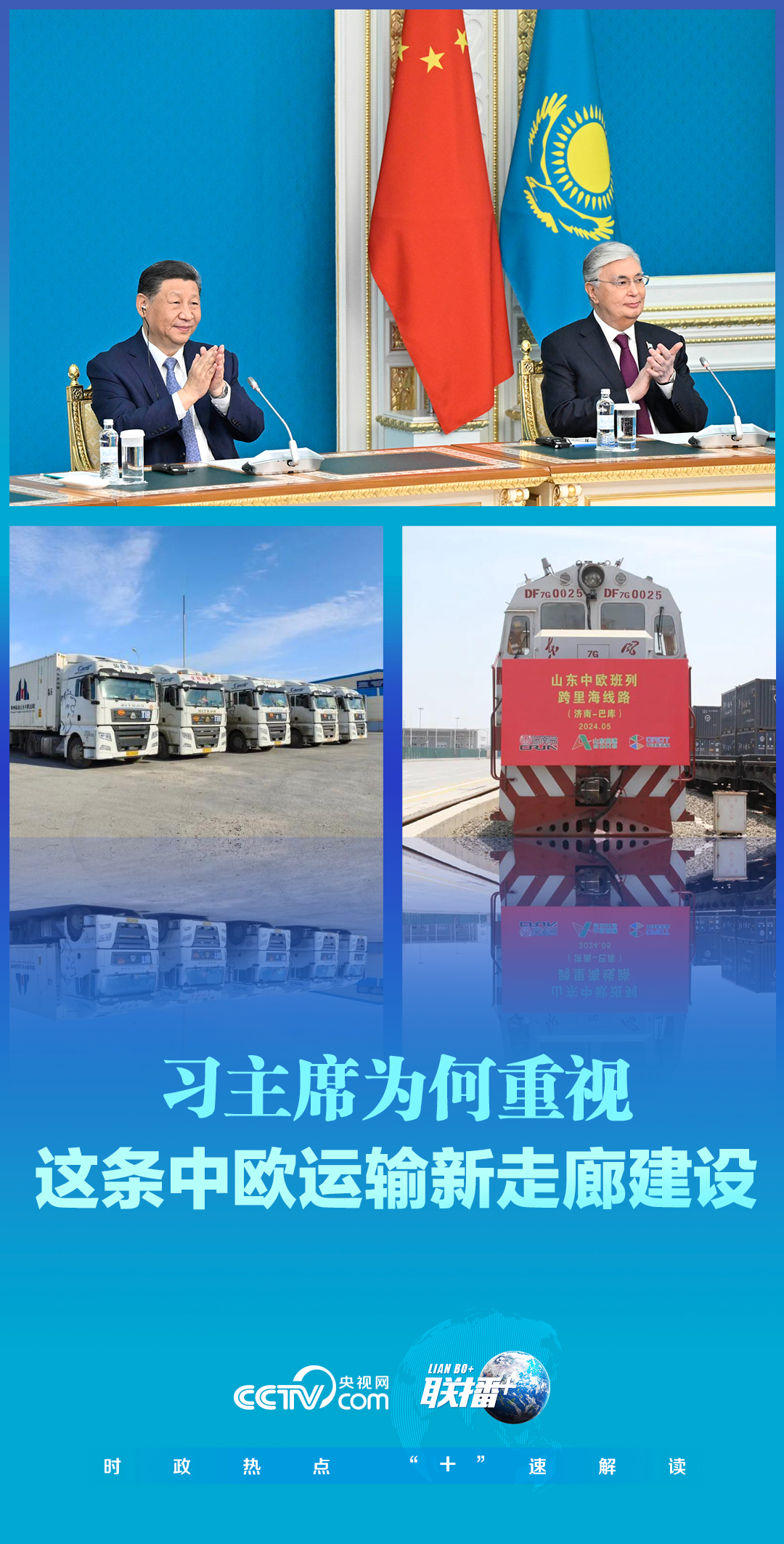 7月3日,正在哈薩克斯坦訪問的習近平主席同托卡耶夫總統(tǒng)以視頻方式共同出席中歐跨里海直達快運開通儀式。兩國元首共同下達作業(yè)指令。