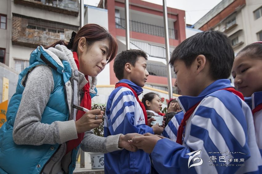 體操冠軍汪鑫在康定東大街小學(xué)為小學(xué)生簽名。