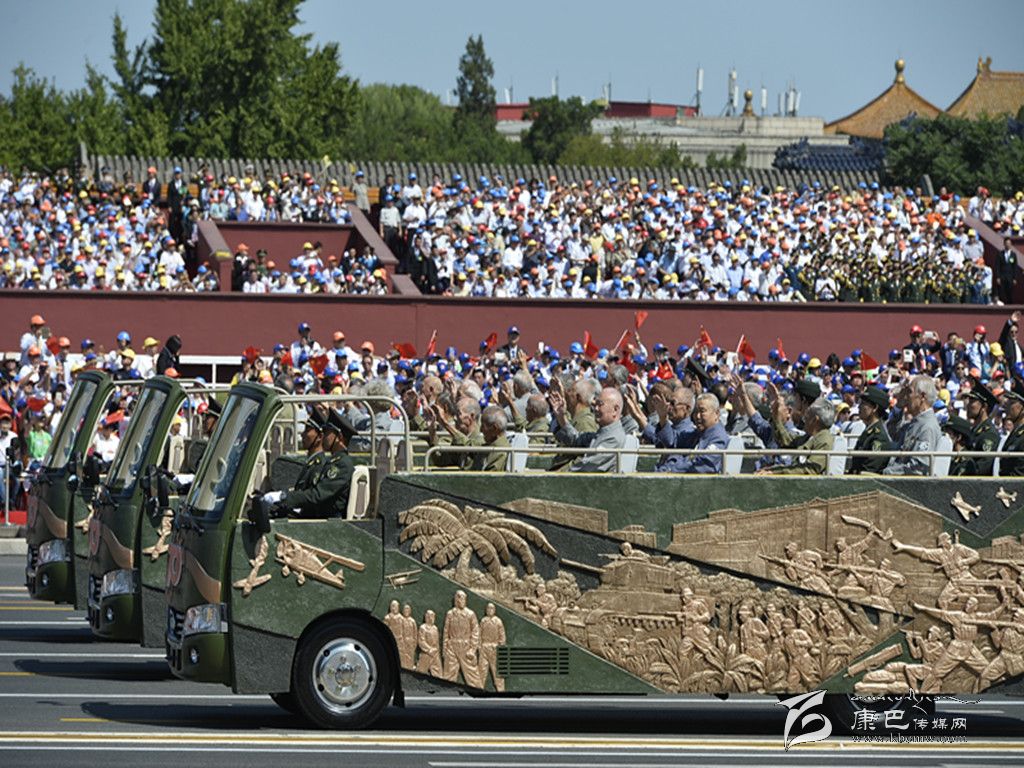 9月3日,中國(guó)人民抗日戰(zhàn)爭(zhēng)暨世界反法西斯戰(zhàn)爭(zhēng)勝利70周年紀(jì)念大會(huì)在北京隆重舉行。這是抗戰(zhàn)老兵乘車方隊(duì)。    新華社記者 普布扎西攝