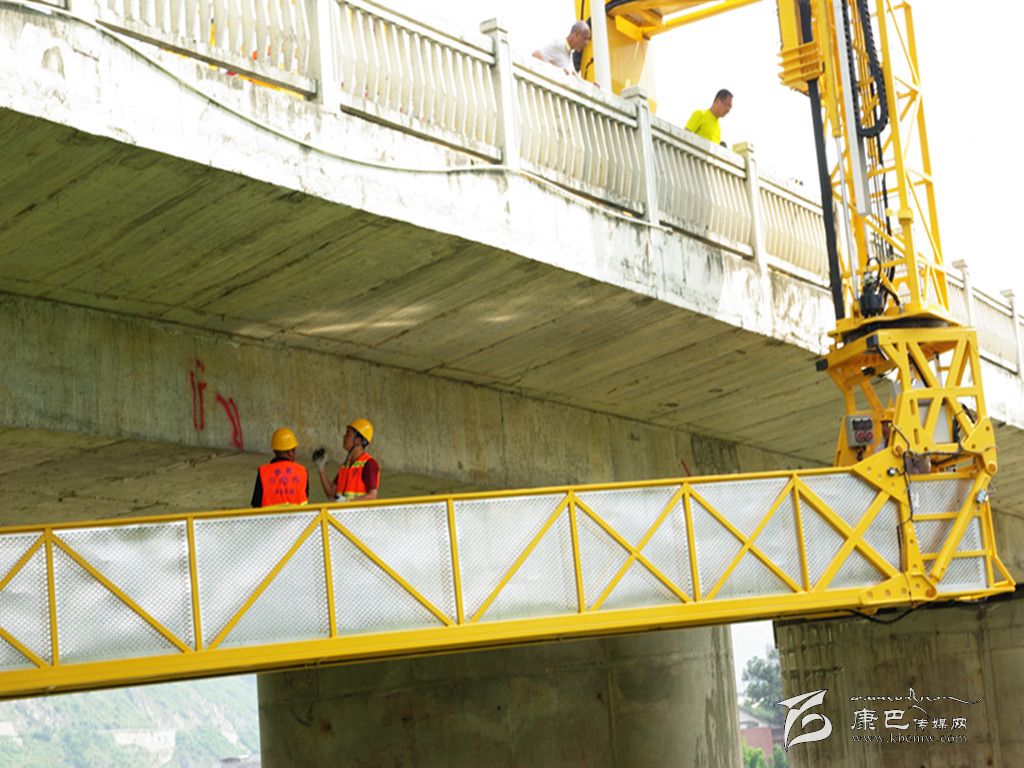 圖為養(yǎng)護工人正在對橋梁進行檢測。楊克勇 攝