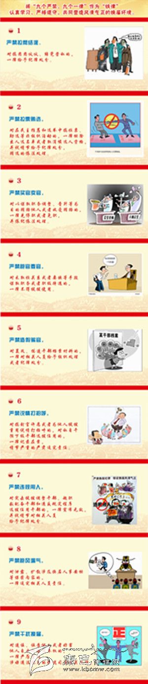 7.嚴(yán)禁違規(guī)用人,對突擊提拔調(diào)整干部、超職數(shù)配備干部和違反規(guī)定程序選拔任用干部的,一律宣布無效,并視情節(jié)對相關(guān)人員給予紀(jì)律處分。