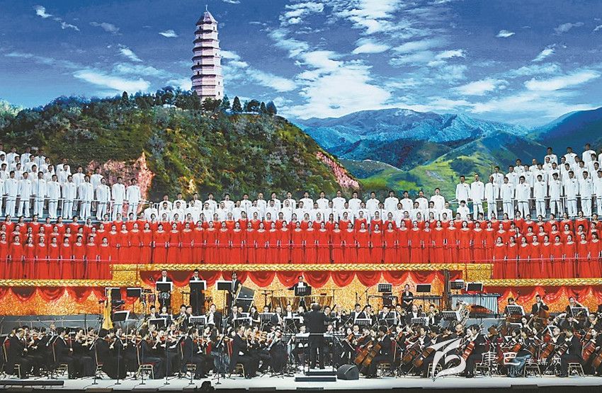 六月二十九日,文藝工作者在音樂(lè)會(huì)上演奏、演唱《延安頌》。 新華社記者 王曄 攝