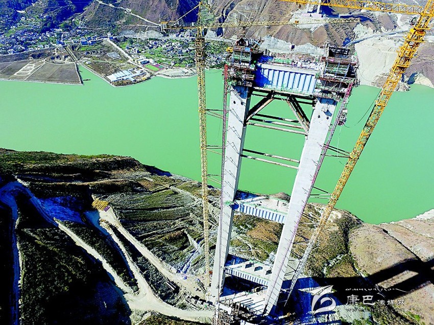 大渡河特大橋全長(zhǎng)1411米,主橋是單跨1100米鋼桁梁懸索橋,抗震設(shè)計(jì)烈度9級(jí),主塔橫梁采用波形鋼腹板,這是全國(guó)首個(gè)將波形鋼腹板應(yīng)用于高速公路橋梁索塔橫梁的工程。橋址區(qū)位于3個(gè)地震斷裂帶交匯處,處于大渡河干熱河谷,氣象條件多變,瞬時(shí)風(fēng)速最高可達(dá)每秒32.6米,相當(dāng)于12級(jí)臺(tái)風(fēng),施工難度大。為便于施工,施工方從318國(guó)道旁借道,建起3.5公里的便道,可從山頂?shù)竭_(dá)墩底建設(shè)點(diǎn)。受地形限制,便道呈“之”字形折返往上,成為一道獨(dú)特的景致。僅修建這條便道就挖了近12萬(wàn)立方米土,若壘起來(lái),相當(dāng)于一個(gè)長(zhǎng)100米、寬100米、高12米的巨型建筑。