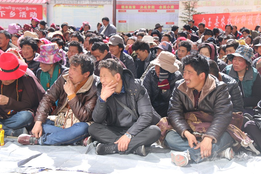 宣講中,宣講員們一會(huì)兒用藏語(yǔ)一會(huì)兒用漢語(yǔ),一會(huì)兒講故事一會(huì)兒舉例子,一會(huì)兒逗趣說笑一會(huì)兒拍案而起,將省、州、縣的方針政策和國(guó)家法律、法規(guī)與當(dāng)?shù)厝罕姷膶?shí)際生活聯(lián)系起來,講得生動(dòng)形象;“現(xiàn)在政策這么好,自己不努力,以后人家都脫貧了你就只有看到?!薄扒谙词郑谙丛?,健康生活少不了?!薄耙粋€(gè)人長(zhǎng)得再漂亮,住的房子不干凈,穿的衣服不干凈,還有一身壞習(xí)慣,也沒得哪個(gè)喜歡她嘛?!薄瓬\顯通俗又包含道理的句子更是層出不窮?,F(xiàn)場(chǎng)時(shí)而笑聲朗朗、掌聲雷動(dòng),時(shí)而氣氛肅穆、鴉雀無(wú)聲。臺(tái)上,講的是激情四射、手舞足蹈;臺(tái)下,聽的是忘乎所以、目瞪口呆。長(zhǎng)達(dá)3個(gè)小時(shí)的宣講,現(xiàn)場(chǎng)秩序井然。