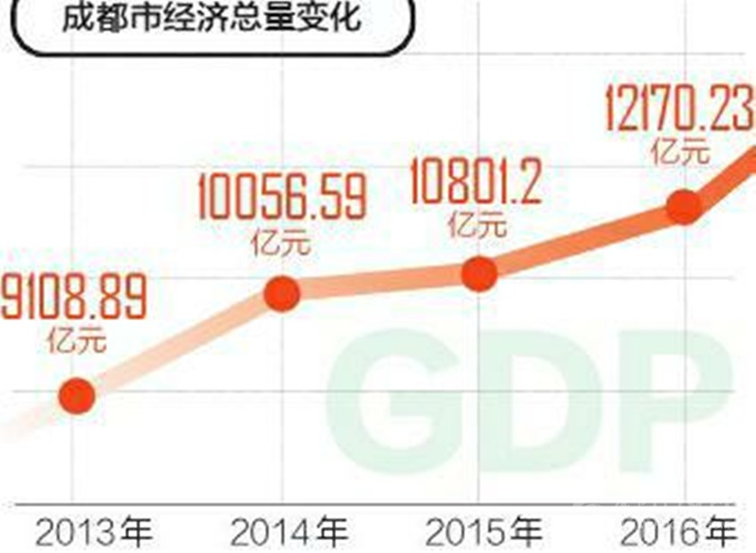 2014年,成都GDP首次突破萬億元大關(guān),此后兩年又連跨兩個(gè)千億臺(tái)階,首位城市的地位穩(wěn)若磐石。