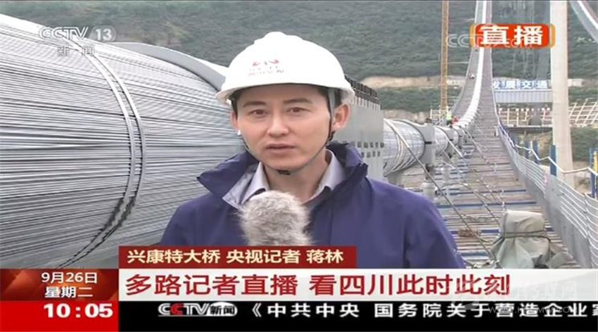 蔣林從興康特大橋建設(shè)現(xiàn)場發(fā)回直播報道