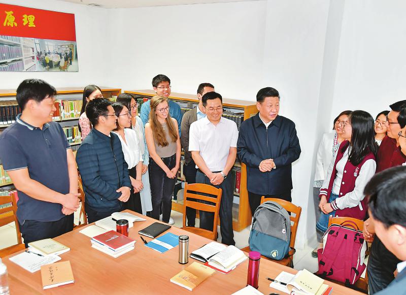 5月2日,中共中央總書記、國家主席、中央軍委主席習(xí)近平來到北京大學(xué)考察。這是習(xí)近平在北京大學(xué)馬克思主義學(xué)院,與正在就“解讀新時代”進(jìn)行座談交流的中外學(xué)生親切交談。 新華社記者 李濤 攝