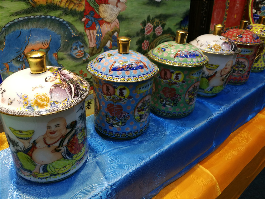 付國華在介紹時說,“高溫粉彩”必須以線條繪畫,將陶瓷唐卡染上顏料燒制,燒制完后再上色再燒制,然后再上色再燒制,在高溫1200度反復(fù)燒制五六次,才能達(dá)到一幅比較完整的唐卡。下步公司將黑陶作為新的挖掘目標(biāo),相信在馮建華老師的指導(dǎo)下,我州黑陶高溫粉彩陶瓷藝術(shù)將呈現(xiàn)出新亮點(diǎn),“高溫粉彩”陶瓷藝術(shù)將在廣闊的市場中,為喜愛這一藝術(shù)品的消費(fèi)者提供需求。