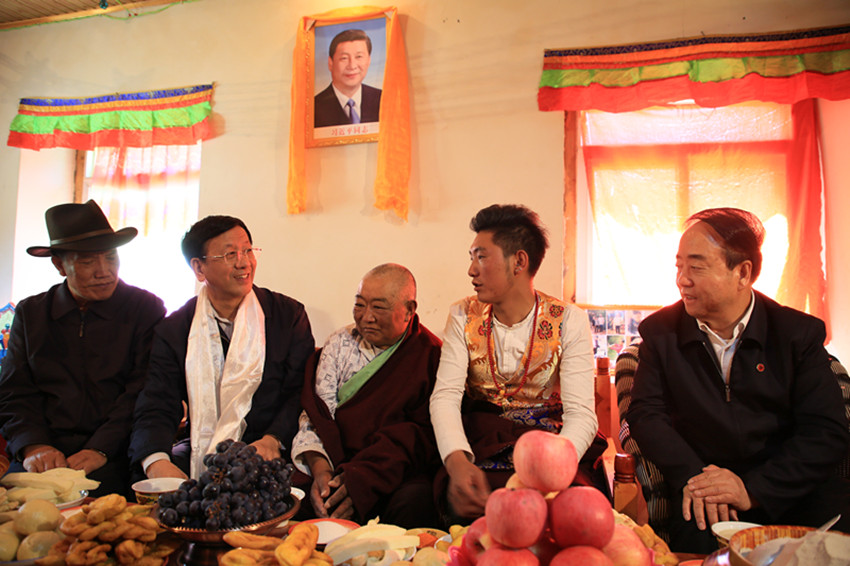 曹建明在康定市瓦澤鄉(xiāng)水橋村村民洛布家中調研。
