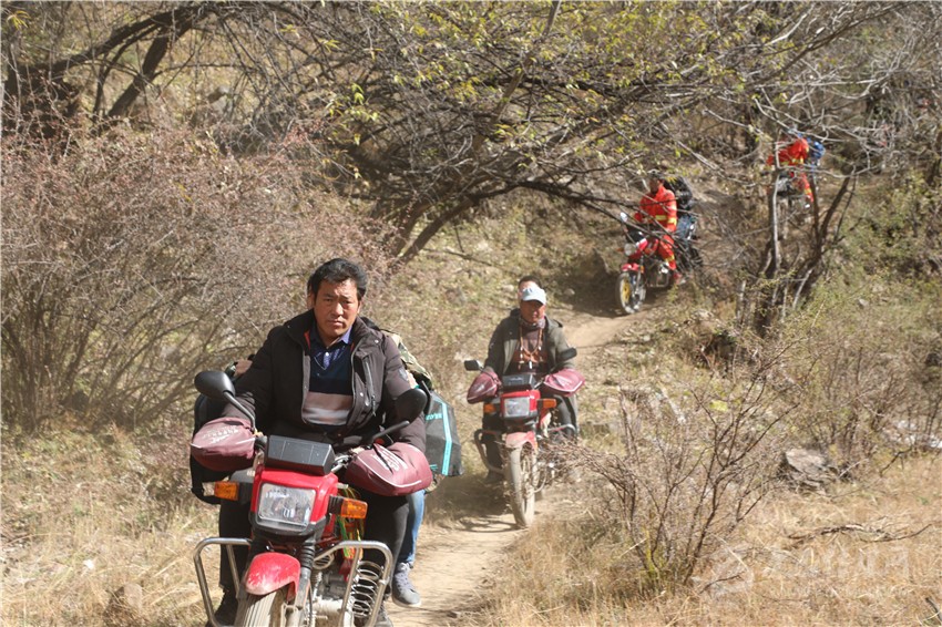11月4日,澤仁頓珠在中轉(zhuǎn)站接到第一個任務(wù)——送一名搶險隊員和約50公斤的物資到堰塞體上。從則巴村出發(fā)鉆進灌木叢中,他才感受到路途艱難。所謂的道路是之前的人和摩托車踩出來的“騾馬道”,最窄的地方僅約30厘米。張牙舞爪的灌木枝不時從臉上、手臂上劃過,路兩邊不是陡坡,就是十幾米高的懸崖。
