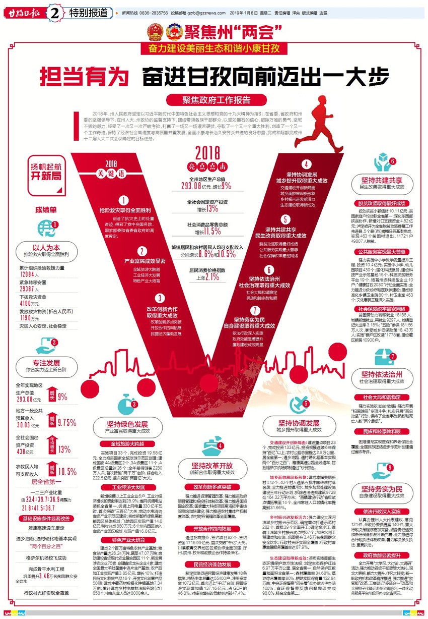 州人民政府州長肖友才代表州政府作工作報(bào)告?!墩ぷ鲌?bào)告》由三部分組成:2018年工作回顧;2019年主要目標(biāo);2019年重點(diǎn)工作。