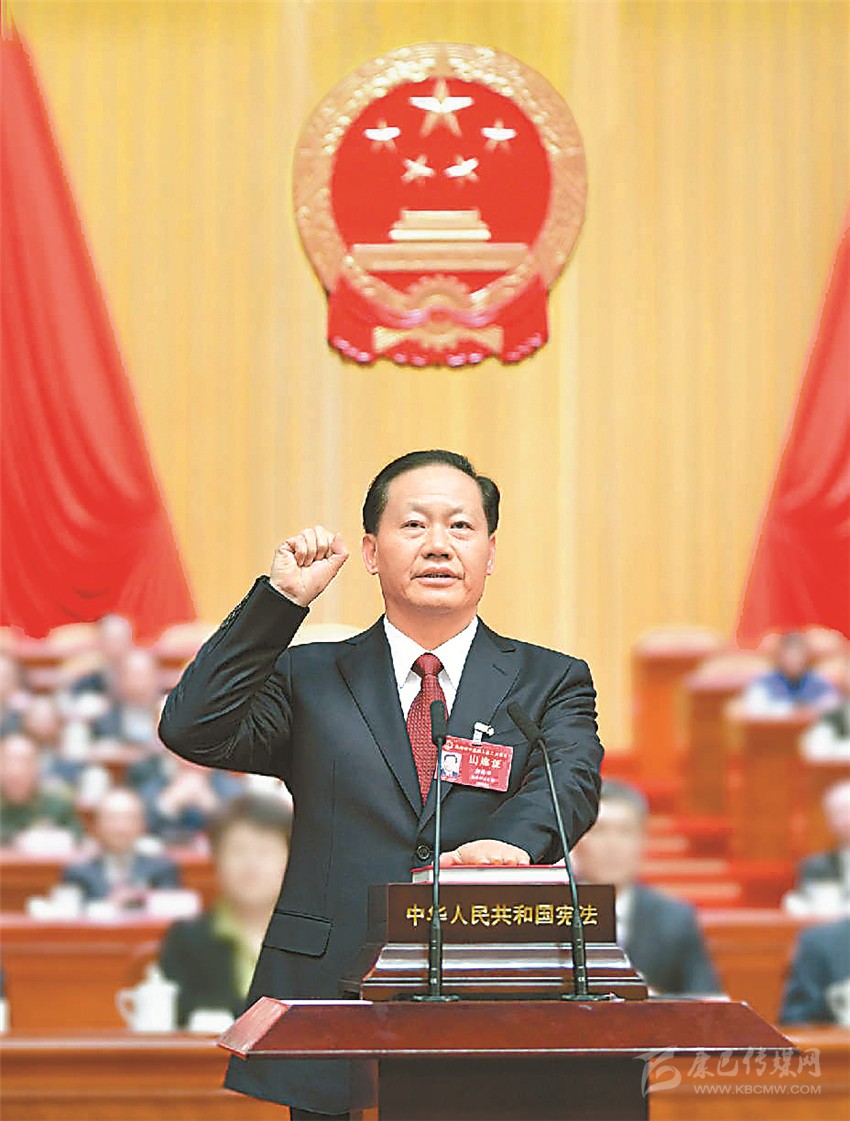 隨后,舉行憲法宣誓儀式。彭清華走上宣誓臺,左手撫按憲法,右手舉拳,面向全體人大代表莊嚴(yán)宣誓。新當(dāng)選的省十三屆人大常委會委員以及省第十三屆人民代表大會監(jiān)察和司法委員會、社會建設(shè)委員會主任委員、副主任委員、委員也進(jìn)行了憲法宣誓。