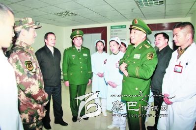他還走進每一個科室,檢查工作,與醫(yī)務人員交談,走進病房,看望慰問正在這里接受治療的部隊官兵。