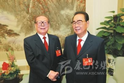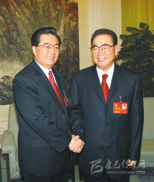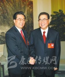2007年10月21日,在黨的十七大閉幕前,胡錦濤同志同李鵬同志在一起。 新華社發(fā)