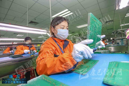 遂寧市經(jīng)開區(qū)英創(chuàng)力電子車間內(nèi),工人們正在加緊趕制PCB醫(yī)用電路板。