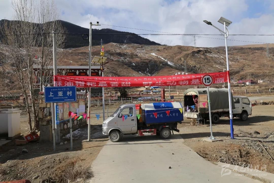 “不準(zhǔn)進(jìn)哈,離我遠(yuǎn)點(diǎn)。”2月13日,記者來(lái)到道孚縣格西鄉(xiāng)上亞村口,一個(gè)垃圾車橫著堵住進(jìn)村道路,一幅“酥油糌粑最香甜,野生動(dòng)物是病源”的橫幅醒目地牽一根電桿和路燈柱上,一個(gè)中年藏族婦女遠(yuǎn)遠(yuǎn)地打著招呼。