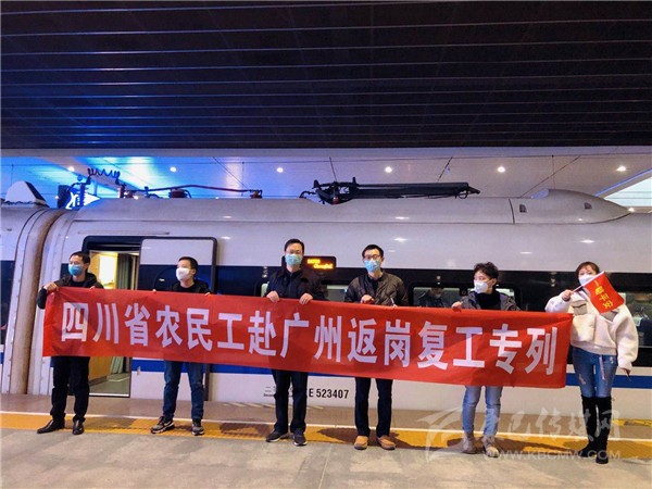 2月20日上午11:30,滿載著917名川籍農(nóng)民工的D4755次返崗專列,從成都東出發(fā)一路駛往廣州南。這是今年春節(jié)后我省首趟開往廣東省的農(nóng)民工返崗專列,也是我省與廣東在新冠病毒疫情期間勞務(wù)協(xié)作共識(shí)達(dá)成后,開行的首趟農(nóng)民工返崗專列。此次專列開行,極大滿足了疫情期間我省農(nóng)民工外出務(wù)工需求,同時(shí)也為廣東省企業(yè)復(fù)工復(fù)產(chǎn)提供了勞動(dòng)力支持。此趟專列票務(wù)費(fèi)用由廣東省人社廳承擔(dān),農(nóng)民工免費(fèi)乘坐。