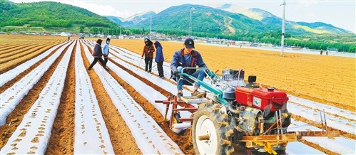 ▲村民在布拖縣拖覺鎮(zhèn)日拍村萬畝馬鈴薯高產(chǎn)示范基地里除草。該縣是四川省優(yōu)勢特色馬鈴薯生產(chǎn)基地。 (攝于2013年6月)