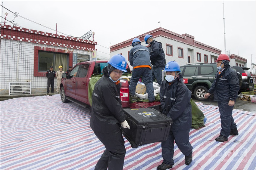 獲知“災(zāi)情”的第一時間, 國網(wǎng)四川省電力公司馬上發(fā)布集結(jié)準(zhǔn)備信息,聯(lián)系國網(wǎng)陜西省電力公司、重慶市電力公司進(jìn)行應(yīng)急聯(lián)動支援。國網(wǎng)甘孜供電公司立即啟動應(yīng)急預(yù)案迅速響應(yīng),對災(zāi)害進(jìn)行先期處置。來自陜西、重慶和四川應(yīng)急中心、信通公司、自貢公司、遂寧公司、眉山公司、電力醫(yī)院等6家基層單位的11支應(yīng)急隊伍全副武裝,攜帶工器具和應(yīng)急救援物資,在蒲江集結(jié)后,頂風(fēng)冒雨,遠(yuǎn)距離奔襲7小時抵達(dá)“災(zāi)區(qū)”。