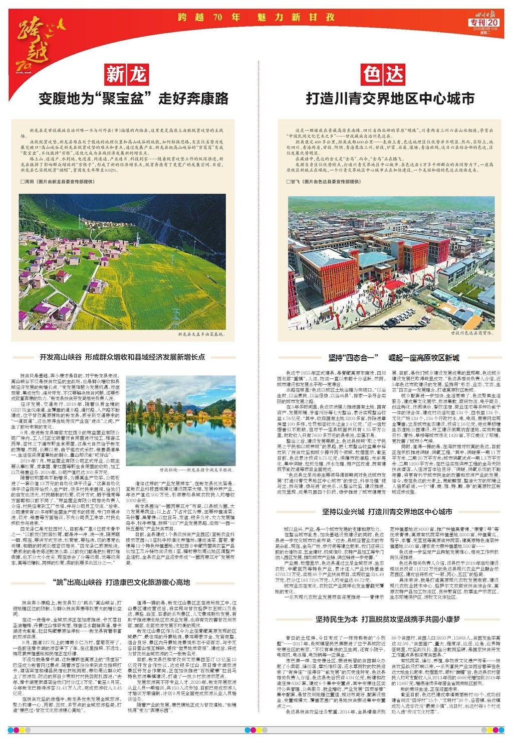今天,四川省委機(jī)關(guān)報(bào)——四川日?qǐng)?bào),推出12個(gè)整版的特別報(bào)道“跨越70年 魅力新甘孜”,圖文并茂,濃墨重彩地展現(xiàn)甘孜州70年砥礪奮進(jìn)的光輝歲月。