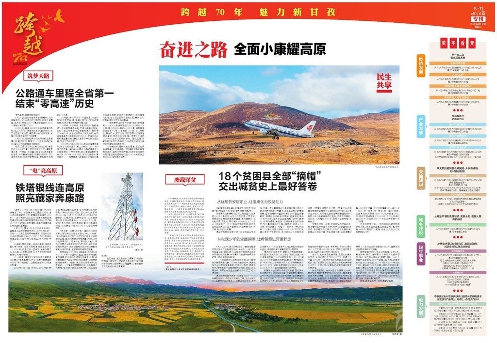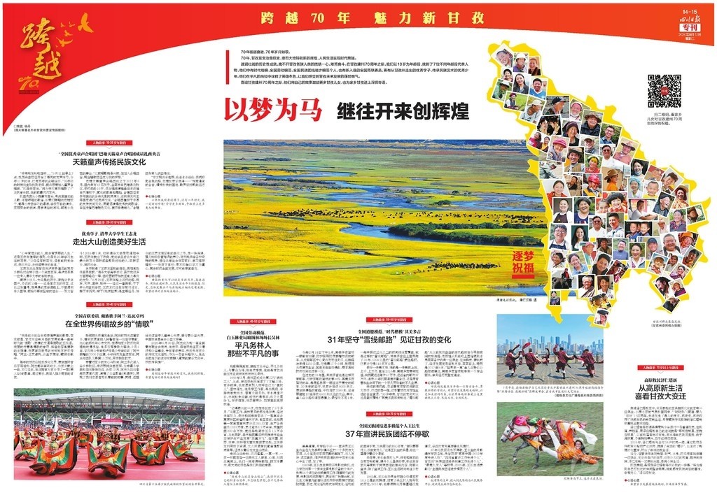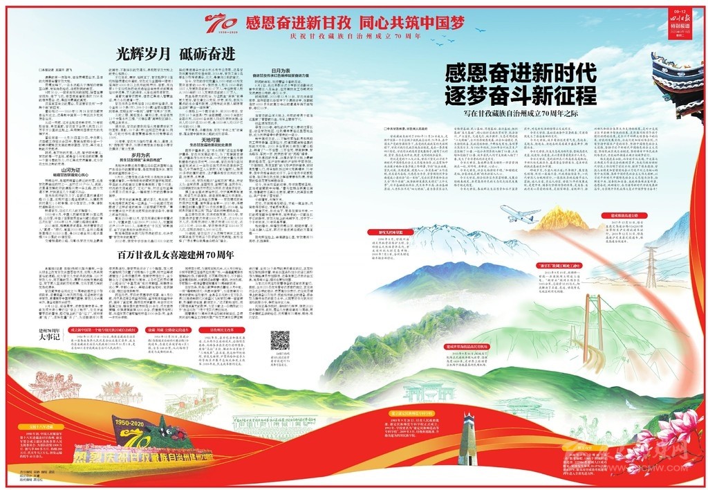 為慶祝甘孜建州70周年,《四川日?qǐng)?bào)》于9月15日推出八連版特別報(bào)道,整體以紅色打底,充滿(mǎn)喜慶的祝福。