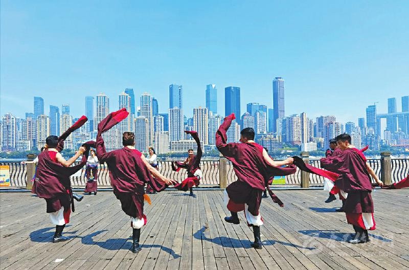 7月中旬,德格縣格薩爾藝術(shù)團赴重慶開展甘孜州建州70周年旅游線路推介暨“絲路甘孜康藏秘境”品牌發(fā)布會,在重慶市區(qū)進行文藝演出。 (德格縣文化廣播電視和旅游局供圖)
