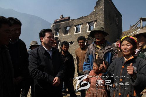 22日早晨8時(shí),胡昌升帶著對(duì)受災(zāi)群眾的惦念、對(duì)災(zāi)情的關(guān)注、對(duì)撲火人員的慰問(wèn),驅(qū)車前往康定縣沙德鄉(xiāng)火災(zāi)現(xiàn)場(chǎng)慰問(wèn)受災(zāi)群眾、查看火災(zāi)災(zāi)情,指揮撲火工作。此前的21日,上赤村洛讓鄧珠的房屋在此次森林火災(zāi)中被燒毀。一到上赤村,胡昌升便踩著帶著余溫的瓦礫來(lái)到受災(zāi)農(nóng)戶洛讓鄧珠家,為洛讓鄧珠送上慰問(wèn)金及毛毯、被子等物資,看望洛讓鄧珠的家人,詳細(xì)詢問(wèn)家庭基本情況和災(zāi)后安置情況。胡昌升說(shuō),大火無(wú)情人有情,房子沒(méi)了可以再建,東西燒毀了可以再買,人沒(méi)事就好,困難是暫時(shí)的,黨委、政府一定會(huì)照顧好你們的生活,和你們一起克服眼前困難,幫助你們盡快建設(shè)更加美麗、更加安全的新家園。他要求縣鄉(xiāng)黨委、政府要幫助洛讓鄧珠切實(shí)解決吃飯、穿衣、帳篷及房屋重建等實(shí)際困難,把黨委政府的溫暖送到他們心上。胡昌升還鼓勵(lì)洛讓鄧珠要振作起來(lái),在黨委政府的幫助下重建家園,不要因受災(zāi)耽誤孩子上學(xué)。希望鄉(xiāng)親們積極伸出援手,幫助洛讓鄧珠家解決生活困難、開(kāi)展家園重建。