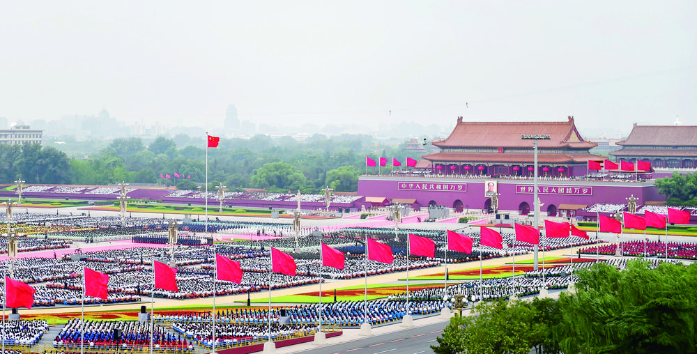 7萬(wàn)多人來(lái)到大會(huì)現(xiàn)場(chǎng),許多人佩戴黨員徽章,揮舞黨旗。與會(huì)者還包括民主黨派、全國(guó)工商聯(lián)和無(wú)黨派人士,共青團(tuán)員和少先隊(duì)員,各行各業(yè)以及少數(shù)民族的代表等。人們?cè)趶V場(chǎng)上組成巨大方陣。