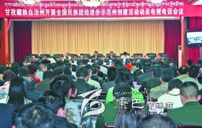 本網(wǎng)訊(記者 秦松 文/圖) 5月26日,全州開展全國民族團(tuán)結(jié)進(jìn)步示范州創(chuàng)建活動(dòng)動(dòng)員電視電話會(huì)議在康定召開。會(huì)議表彰了全州第四次民族團(tuán)結(jié)進(jìn)步模范集體、模范個(gè)人(戶),安排部署全國民族團(tuán)結(jié)進(jìn)步示范州創(chuàng)建工作。