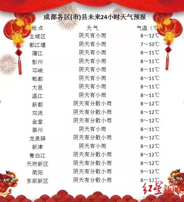 成都方面,預(yù)計未來七天,全市以陰冷天氣為主,氣溫逐步降低,且雨日較多。高海拔山區(qū)有雨夾雪或小雪,日平均氣溫將從當前的10℃左右下降至4℃左右;最高氣溫降幅將達10℃左右。