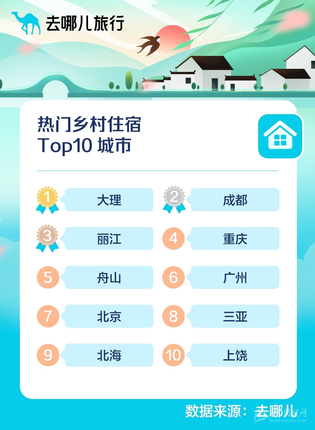 去哪兒旅行預測:2022清明假期熱門鄉(xiāng)村住宿TOP10城市。