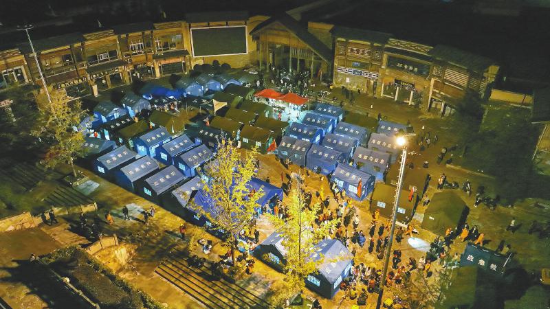 20時10分,救援隊伍終于抵達磨西鎮(zhèn),在磨西廣場安置點,第一盞燈剛好亮起。