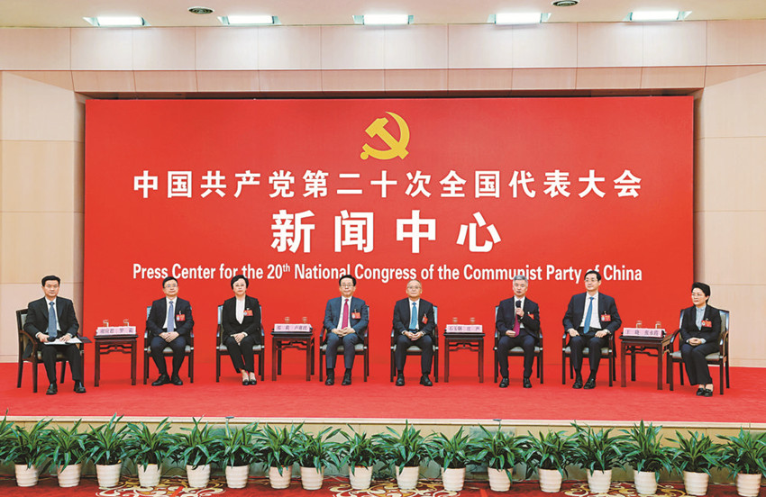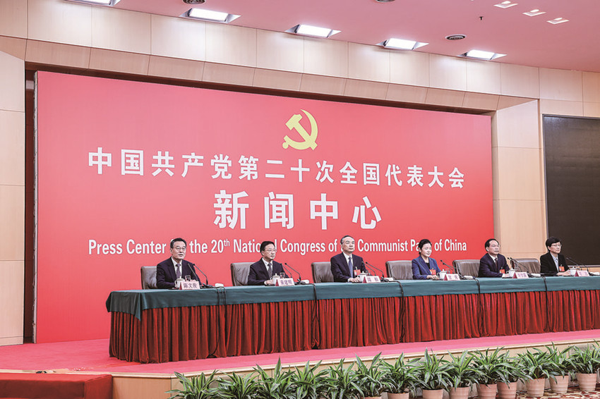 10月19日,中國共產(chǎn)黨第二十次全國代表大會新聞中心舉行集體采訪。 新華社 發(fā)