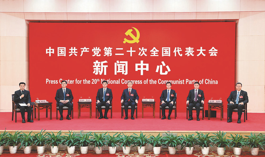 10月20日,中國(guó)共產(chǎn)黨第二十次全國(guó)代表大會(huì)新聞中心舉行集體采訪。 新華社 發(fā)