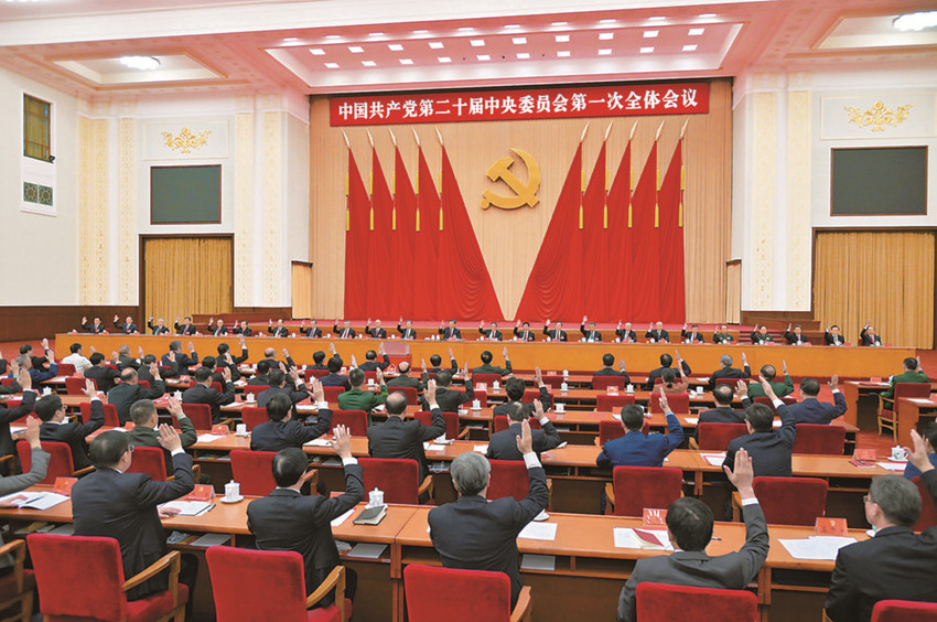 10月23日,中國(guó)共產(chǎn)黨第二十屆中央委員會(huì)第一次全體會(huì)議在北京人民大會(huì)堂舉行。 新華社記者 李濤 攝