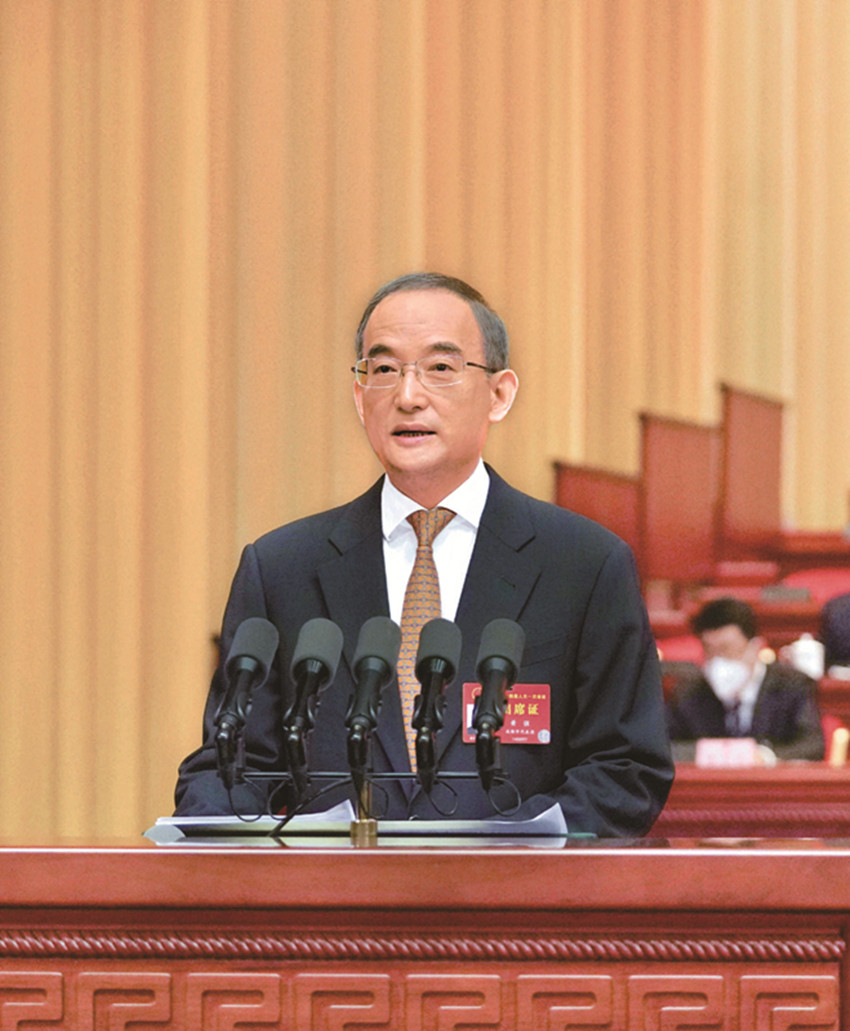 在熱烈的掌聲中,黃強作政府工作報告。報告分四個部分:一、過去五年和2022年工作回顧;二、今后五年發(fā)展主要目標和重點任務(wù);三、2023年工作安排建議;四、更好肩負新征程政府職責(zé)使命。