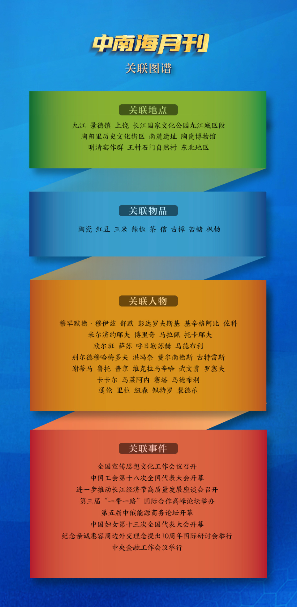 關(guān)聯(lián)事件中,中國工會第十八次全國代表大會、中國婦女第十三次全國代表大會均于本月開幕,習近平總書記分別同中華全國總工會新一屆領(lǐng)導班子成員、全國婦聯(lián)新一屆領(lǐng)導班子成員集體談話。