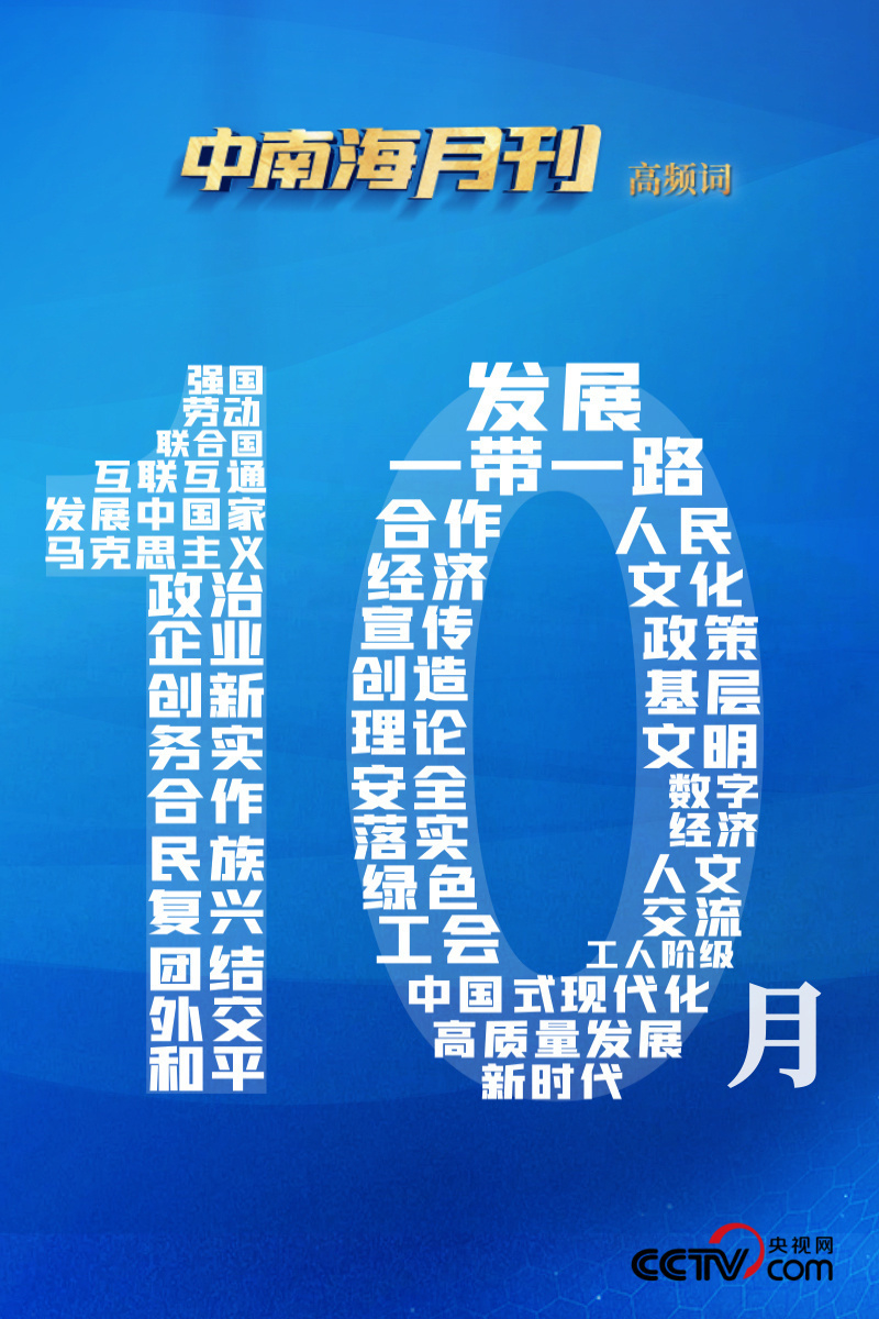 央視網(wǎng)《中南海月刊》運用智能大數(shù)據(jù),與您一起回顧金秋10月的中華大地,在習近平新時代中國特色社會主義思想的引領(lǐng)下,奮進前行的腳步。