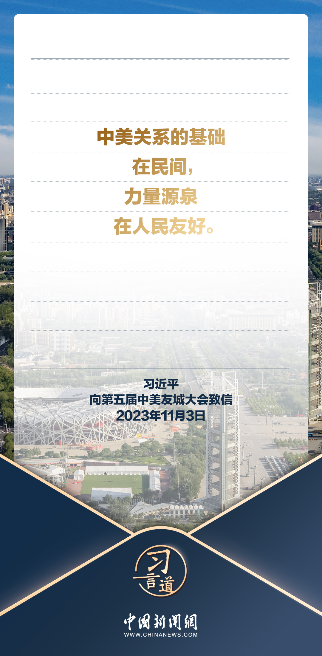 值得關(guān)注的是,本月習近平主席還有兩項與“中美關(guān)系”相關(guān)的日程安排——會見美國加州州長、向美中關(guān)系全國委員會年度頒獎晚宴致賀信。在這兩項日程安排中,習近平主席闡明了中美確立正確相處之道的重要性,會見紐森時,習近平主席還強調(diào)了發(fā)展好中美關(guān)系需要匯聚各方力量:“中美關(guān)系基礎(chǔ)在民間,希望在人民,未來在青年,活力在地方?!?/p>