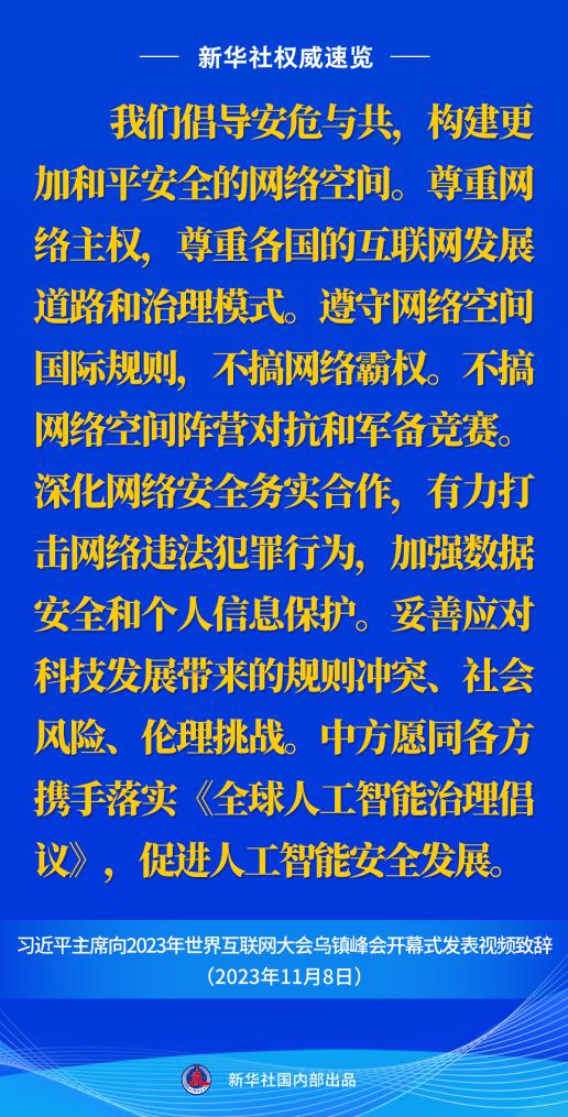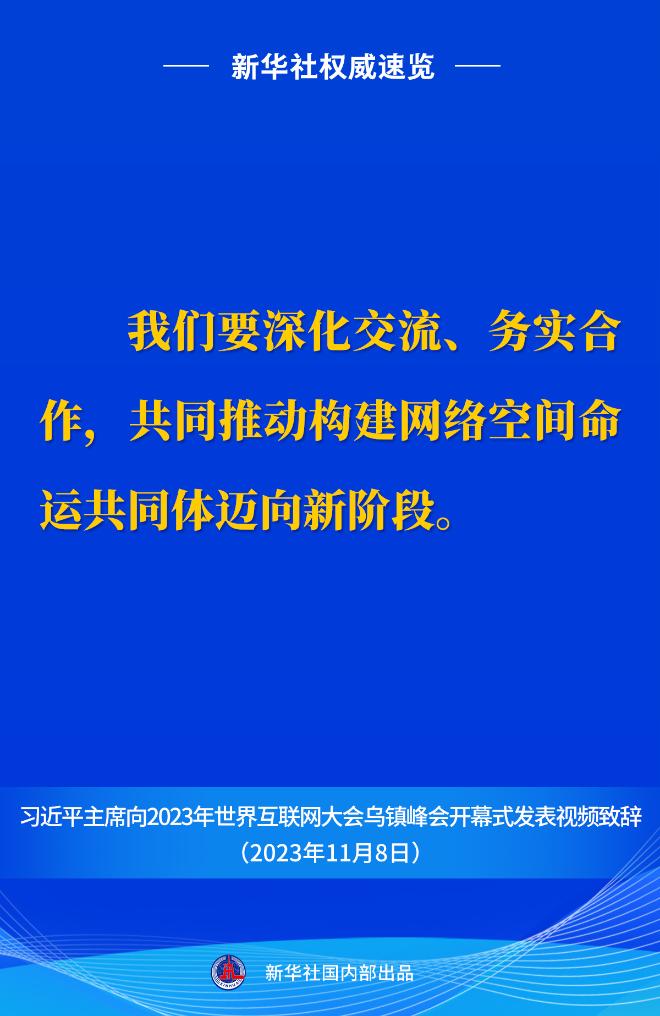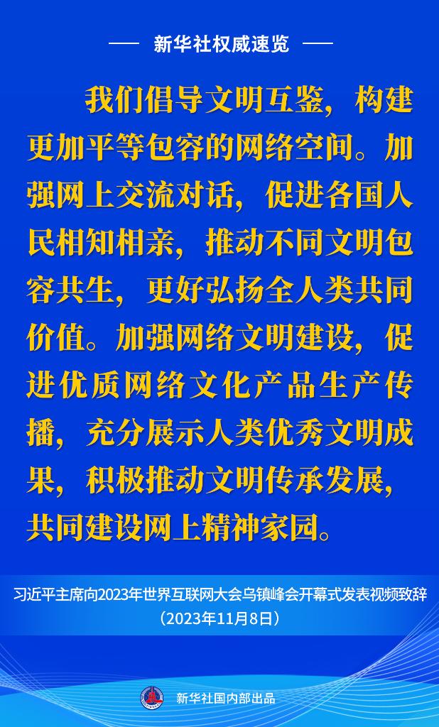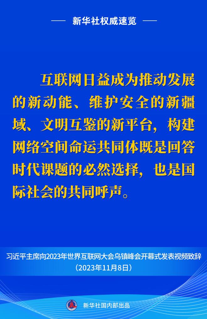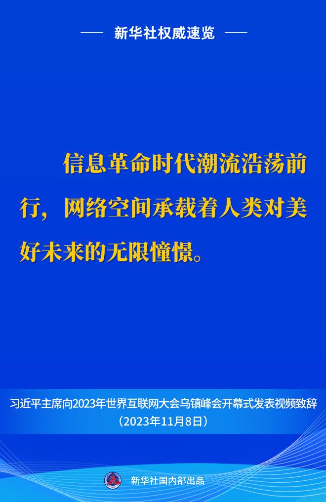 新華社權(quán)威速覽丨習(xí)近平主席向2023年世界互聯(lián)網(wǎng)大會(huì)烏鎮(zhèn)峰會(huì)開(kāi)幕式視頻致辭金句