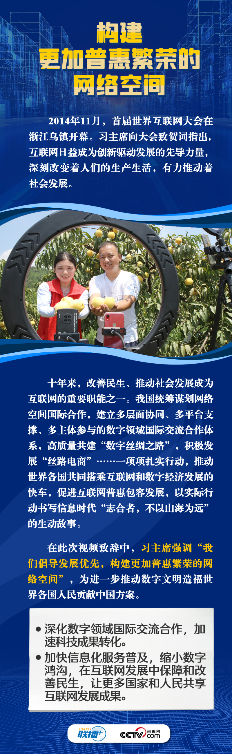 聯(lián)播+11月8日,習(xí)近平主席向2023年世界互聯(lián)網(wǎng)大會烏鎮(zhèn)峰會開幕式發(fā)表視頻致辭。自2014年首屆世界互聯(lián)網(wǎng)大會舉辦以來,習(xí)主席通過發(fā)表主旨演講、視頻致辭或者向大會發(fā)來賀信等不同形式關(guān)心大會的舉辦,始終倡導(dǎo)構(gòu)建網(wǎng)絡(luò)空間命運共同體,得到國際社會廣泛認同和積極響應(yīng)。