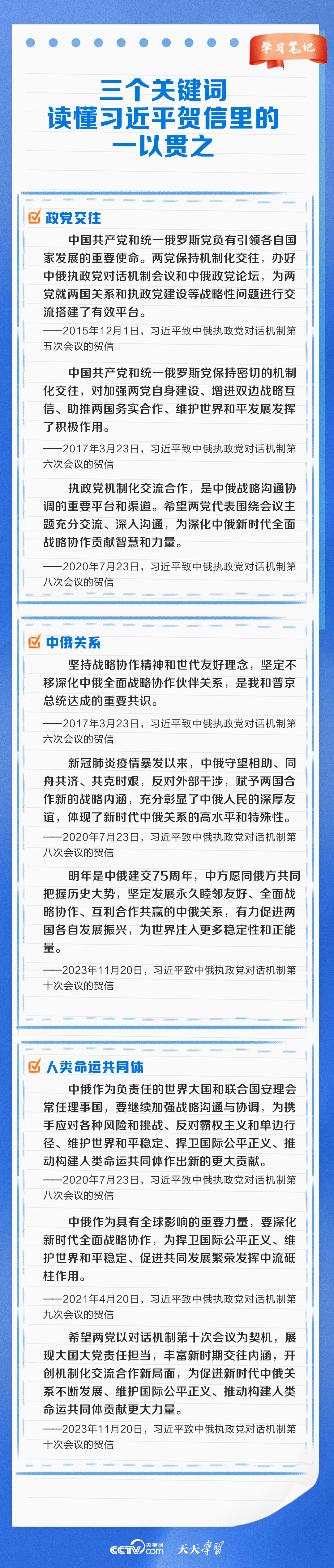 天天學(xué)習(xí)11月20日,中俄執(zhí)政黨對(duì)話機(jī)制第十次會(huì)議以視頻方式舉辦。習(xí)近平總書記同普京總統(tǒng)分別向會(huì)議致賀信。習(xí)近平總書記在賀信中強(qiáng)調(diào),中俄執(zhí)政黨對(duì)話機(jī)制已發(fā)展成為兩國(guó)鞏固政治互信、密切戰(zhàn)略協(xié)作、推進(jìn)互利合作的獨(dú)特渠道和平臺(tái)。