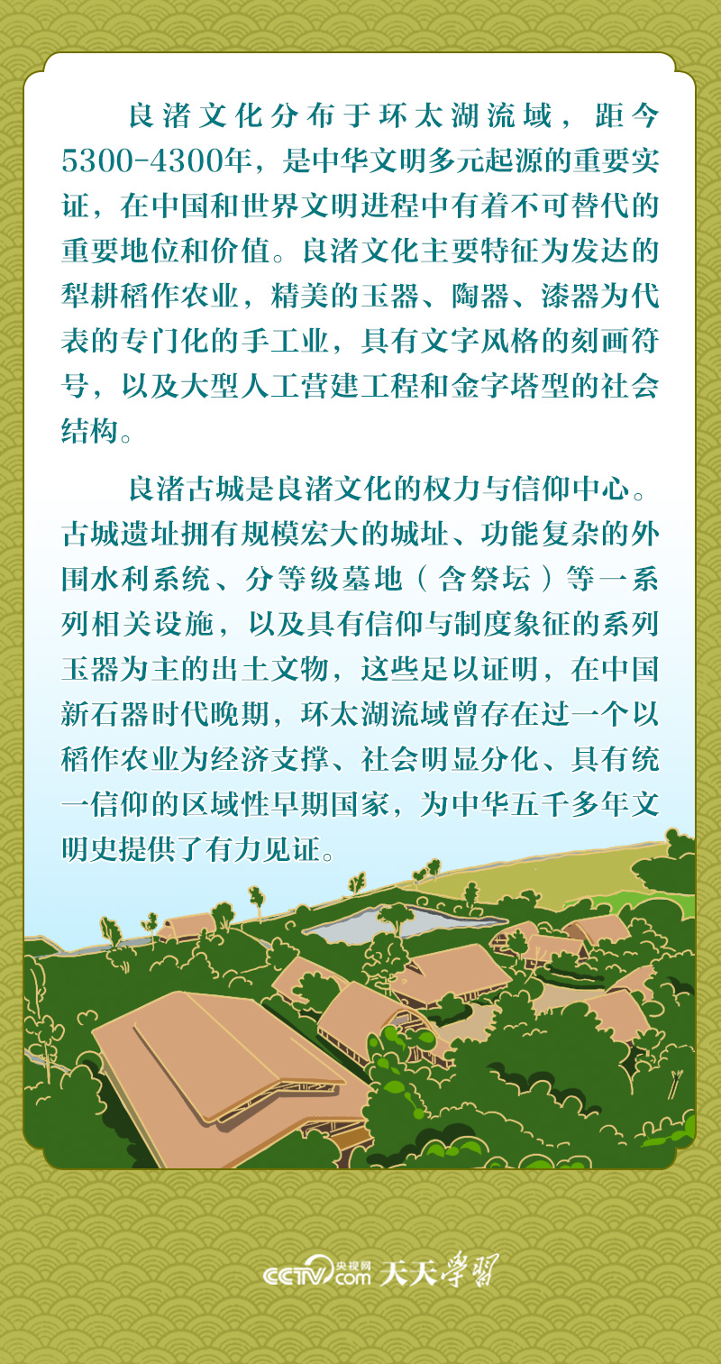 天天學(xué)習(xí)2023年12月3日,習(xí)近平主席向首屆“良渚論壇”致賀信時(shí)指出,良渚遺址是中華五千年文明史的實(shí)證,是世界文明的瑰寶。