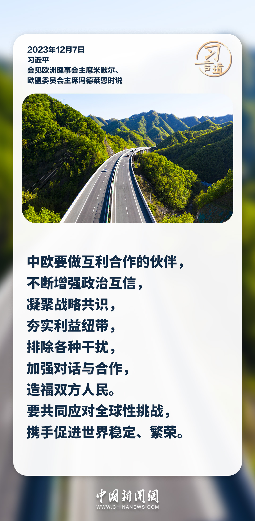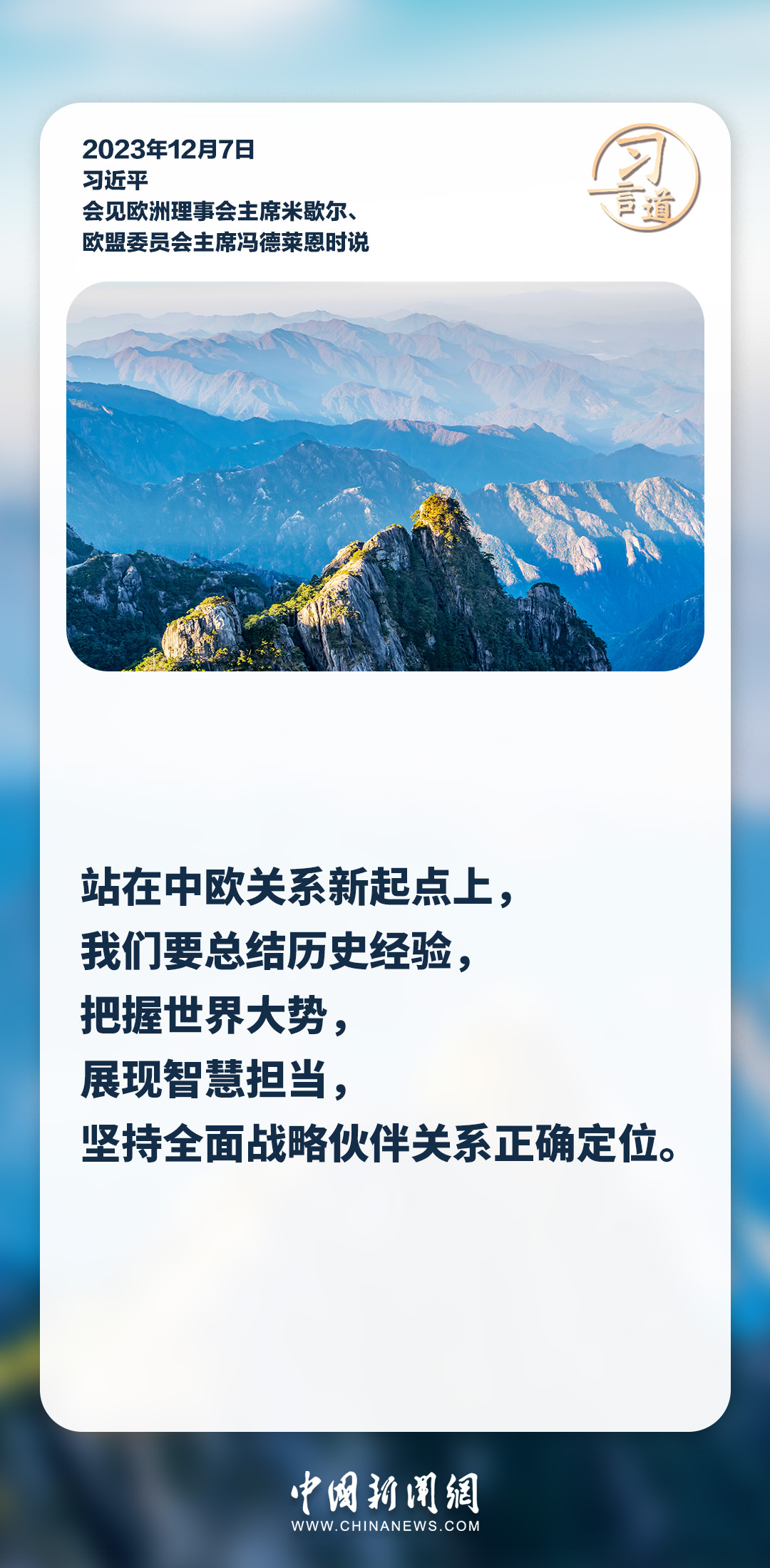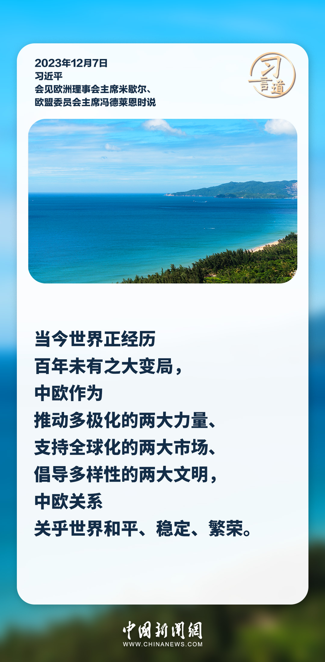 12月7日,國(guó)家主席習(xí)近平在釣魚臺(tái)國(guó)賓館會(huì)見(jiàn)來(lái)華舉行第二十四次中國(guó)—?dú)W盟領(lǐng)導(dǎo)人會(huì)晤的歐洲理事會(huì)主席米歇爾和歐盟委員會(huì)主席馮德萊恩。習(xí)近平說(shuō)——