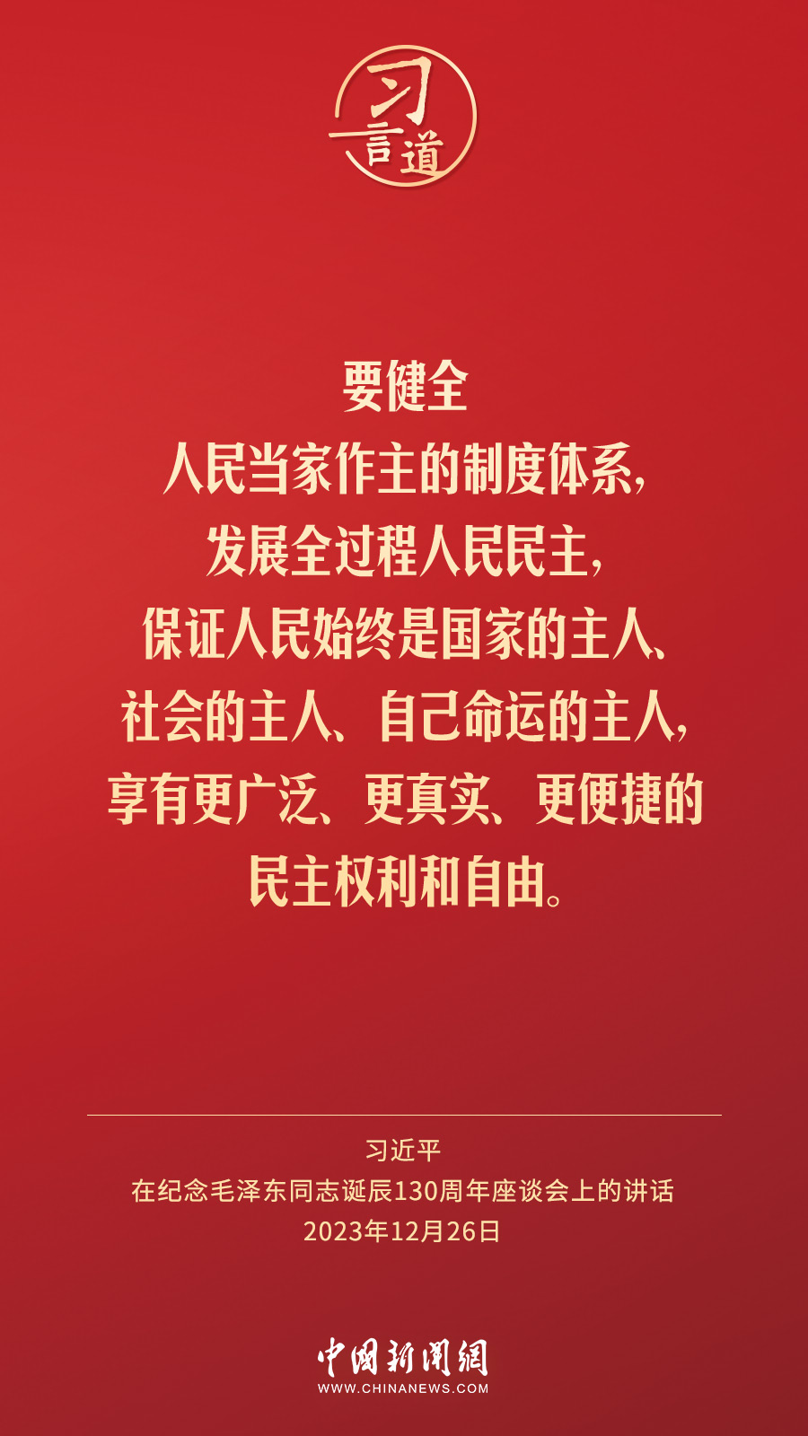 中共中央26日上午在人民大會堂舉行座談會,紀念毛澤東同志誕辰130周年。中共中央總書記、國家主席、中央軍委主席習近平發(fā)表重要講話。習近平指出——