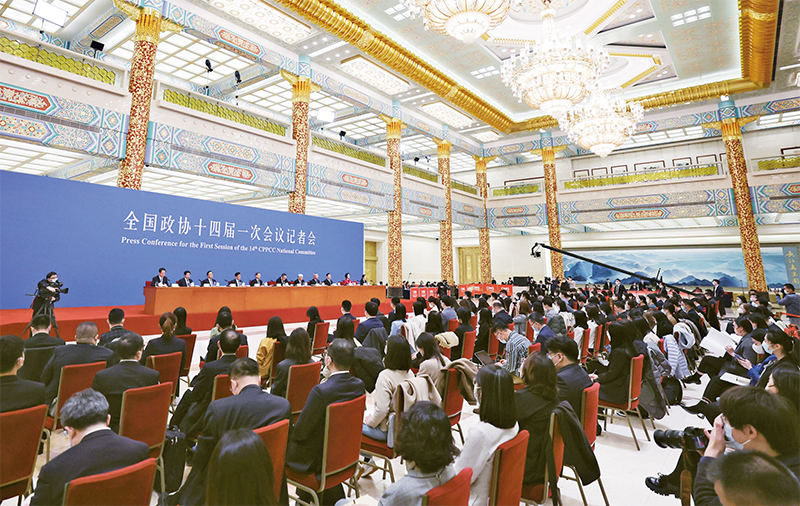 中國(guó)共產(chǎn)黨領(lǐng)導(dǎo)的多黨合作和政治協(xié)商制度作為我國(guó)一項(xiàng)基本政治制度,是中國(guó)共產(chǎn)黨、中國(guó)人民和各民主黨派、無(wú)黨派人士的偉大政治創(chuàng)造,是從中國(guó)土壤中生長(zhǎng)出來(lái)的新型政黨制度。長(zhǎng)期以來(lái),各民主黨派同中國(guó)共產(chǎn)黨長(zhǎng)期共存、互相監(jiān)督、肝膽相照、榮辱與共,履行民主監(jiān)督職能,在幫助中國(guó)共產(chǎn)黨科學(xué)決策、民主決策、依法決策上作出了重要貢獻(xiàn)。圖為2023年3月5日,全國(guó)政協(xié)十四屆一次會(huì)議在北京人民大會(huì)堂舉行民主黨派中央和全國(guó)工商聯(lián)領(lǐng)導(dǎo)人記者會(huì)。 新華社記者 曹燦/攝