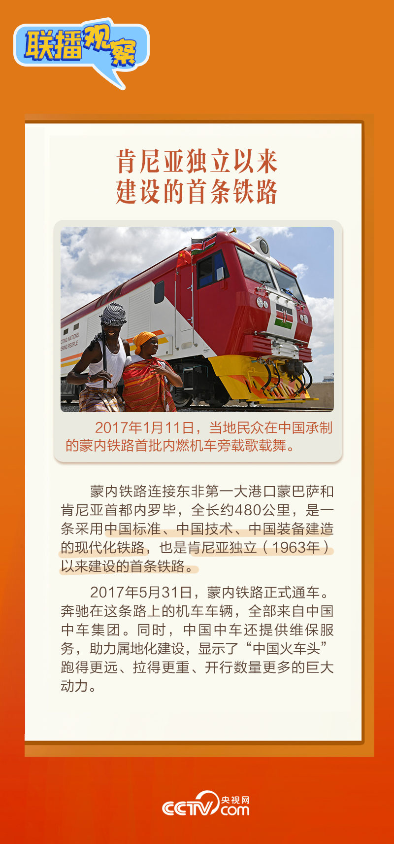 此前,習(xí)主席在外事活動中多次提及蒙內(nèi)鐵路,《新聞聯(lián)播》也持續(xù)關(guān)注這條路的建設(shè)及開通后的運營情況。這條“幸福路”有何特別之處,習(xí)主席為何頻頻提及?它的建成通車給當(dāng)?shù)貛砟男┳兓??《?lián)播觀察》邀您一同了解。