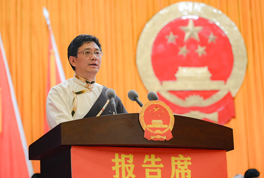 馮發(fā)貴代表州人民政府作政府工作報告。 賴強 甲央讓布 攝