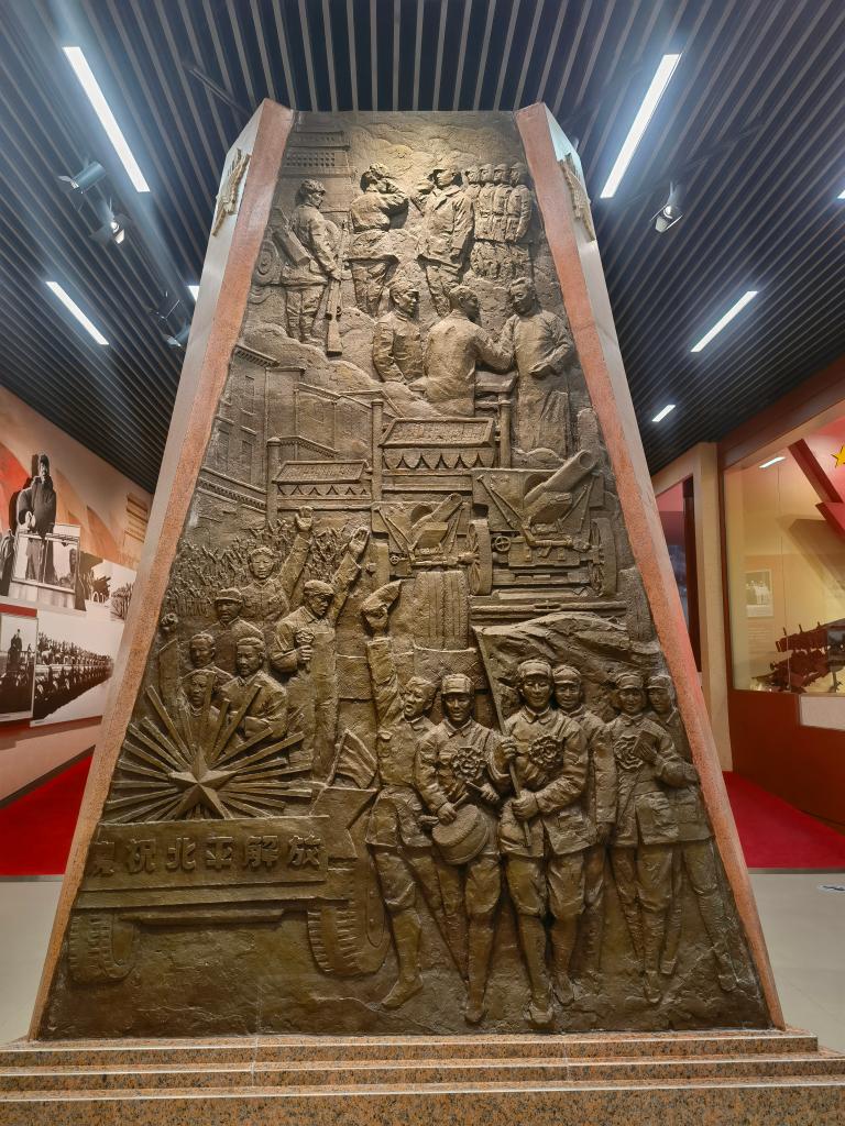 △平津戰(zhàn)役紀(jì)念館主展館由序廳、戰(zhàn)役決策、戰(zhàn)役實(shí)施等六個(gè)部分組成。(總臺(tái)央視記者郭鴻拍攝)