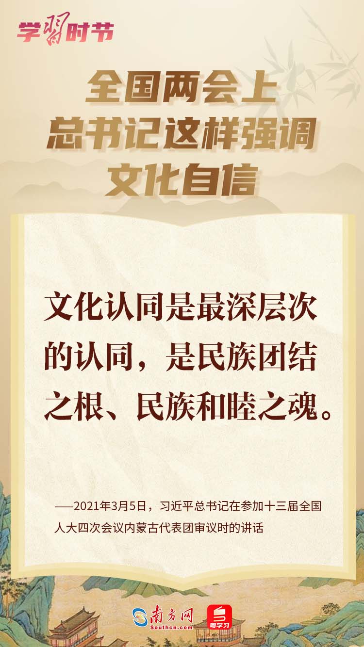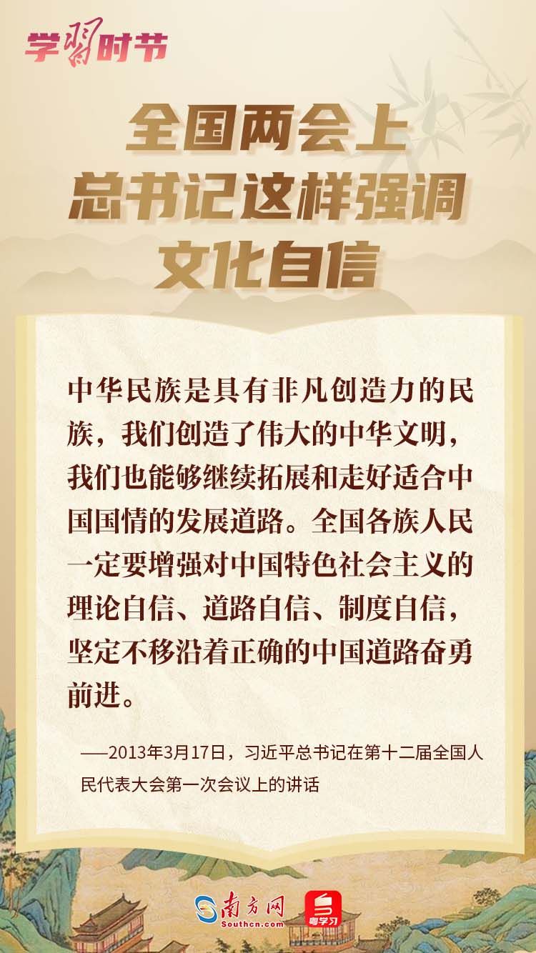 今年政府工作報(bào)告提出“深入學(xué)習(xí)貫徹習(xí)近平文化思想”?!皥?jiān)定文化自信”“大力提升國家文化軟實(shí)力”“建設(shè)社會(huì)主義文化強(qiáng)國、不斷鑄就中華文化新輝煌”……黨的十八大以來,習(xí)近平總書記在全國兩會(huì)上就文化建設(shè)發(fā)表一系列重要講話,為實(shí)現(xiàn)中華民族偉大復(fù)興注入強(qiáng)大精神動(dòng)力。